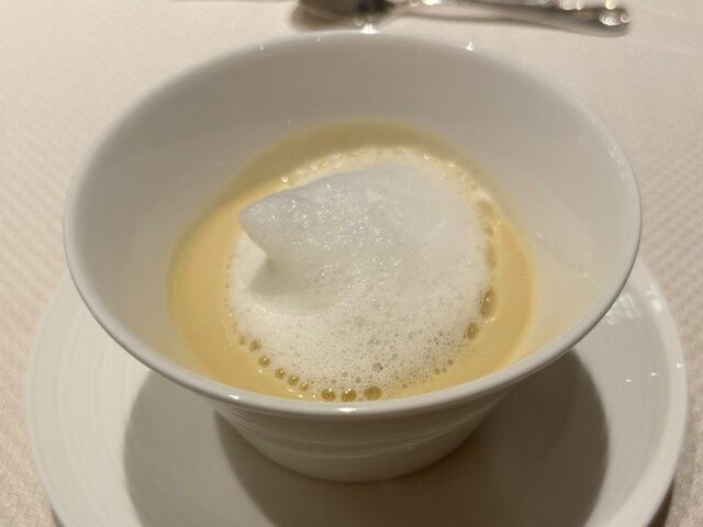 お料理は、アミューズ、オードブル、スープ、サーモンのポワレ、牛フィレのステーキ、デザート、プティフールと続きます。
