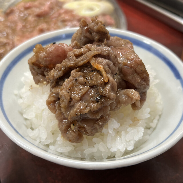 タレはニンニクがしっかりと効いたやや甘めの味付けで、ご飯との相性が抜群。