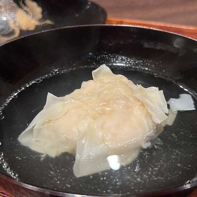 最初はとてもすっきりとした味わいの鶏出汁が入っており、その後に鶏焼売を割ると、中から溢れ出る鶏の脂身が溶け出していき、徐々に濃くなっていくのがわかる。