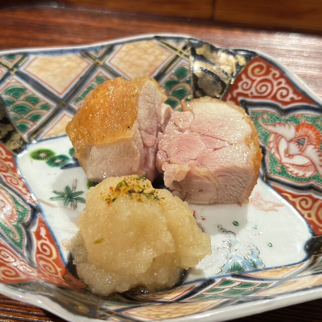 秋田高原比内地鶏のむね肉を、鶏わさとしていただくこちら。