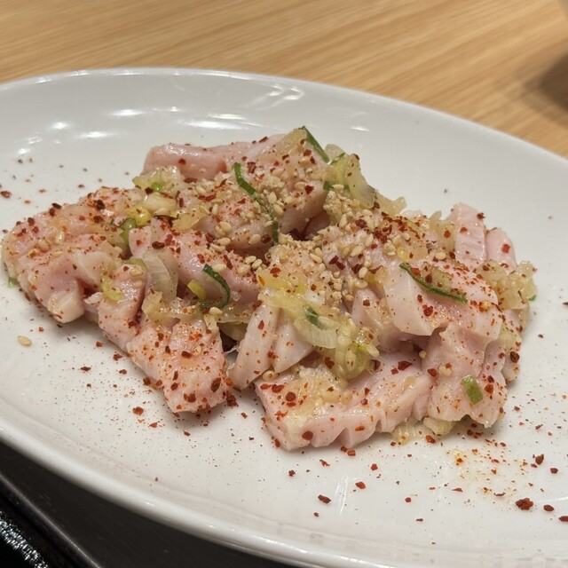 他店ではブリスケなどとも称される肩バラ肉の一種で、見た目通り脂身がしっかりと乗っている。