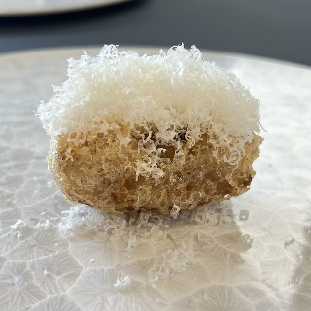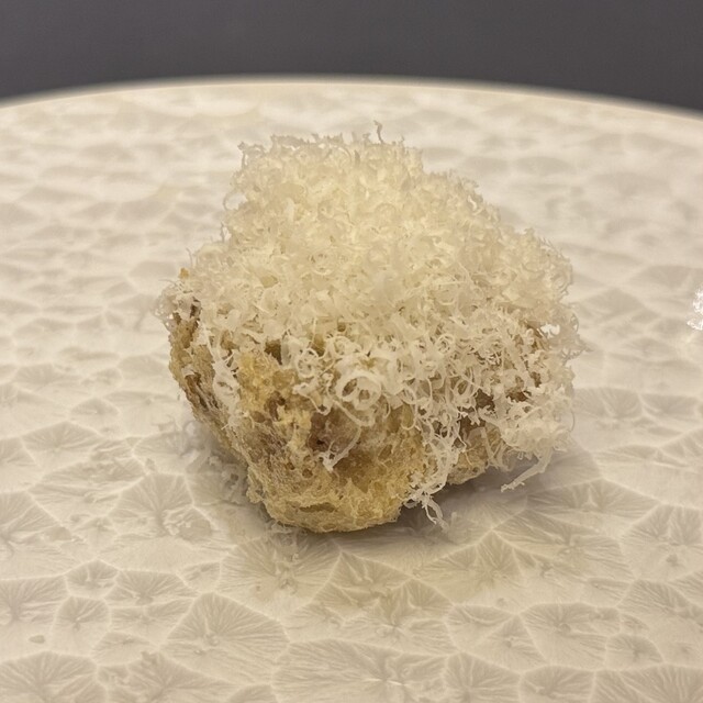鱧の旨味がかなり濃厚に残っており、上に削られたマカダミアナッツの香りともよく合う。