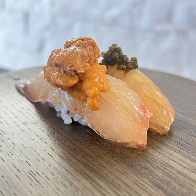 最初はお寿司として金目鯛を楽しみ、後半は贅沢なTKGの味わいで、1皿で2度楽しめる。