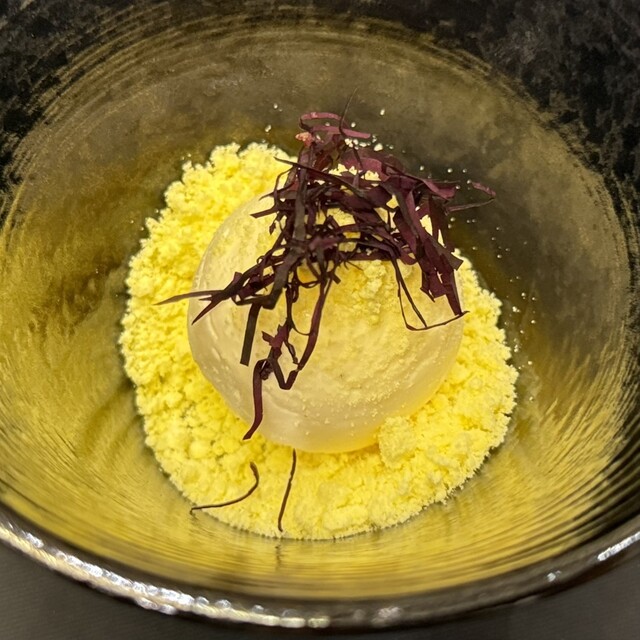 鰹の下側には八千代牛乳で作ったヨーグルトが合わさっており、鰹の旨味がヨーグルトの酸味を甘味に変えてくれた。