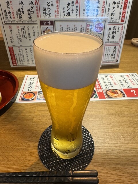 キンキンに冷えたグラスに注がれたビールは、クリーミーな泡と苦味のバランスが絶妙。料理との相性も抜群です。