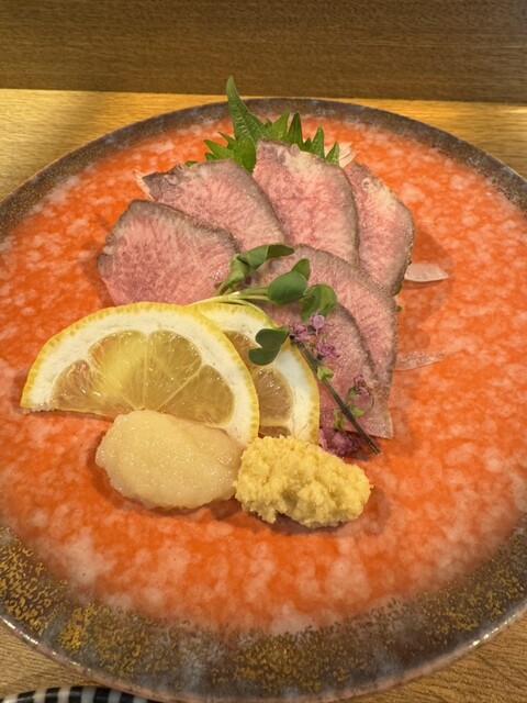 低温調理された牛タンは、まるで上質な赤身肉のような柔らかさ。