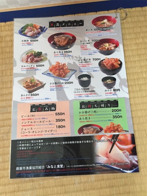 鹿屋市漁協の直営の食堂で
