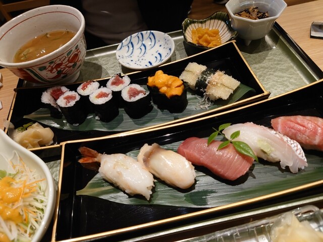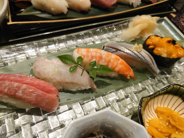 大トロ、メヒカリ、カジキ?、赤貝、シマアジ、車海老、ウニ、柔らか煮ダコ、穴子、あと忘れました♪