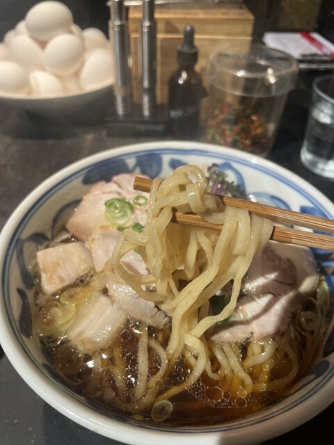ラーメンは無化調系生姜しょうゆベースのやさしいスープに拘りの全粒粉麺が良く絡んでとても美味しい。チャーシューも柔らかくて厚すぎず薄過ぎずトロンと口の中で溶けていく食感を演出、そして煮卵の半熟具合も丁度良くほんとに絶品ラーメンです。