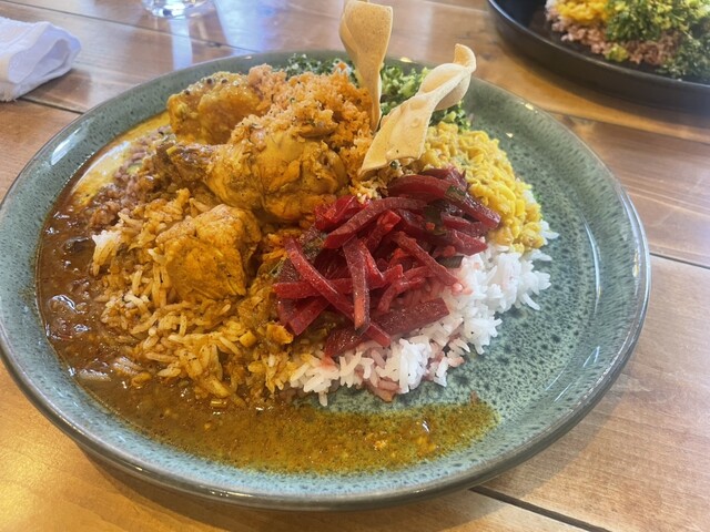 メインのチキンはスパイスが効いててかなり辛いのですがケールやビーツなど水々しくて中和しながら食べるとマイルドになりとても美味しい。