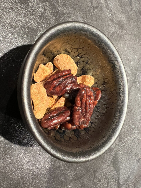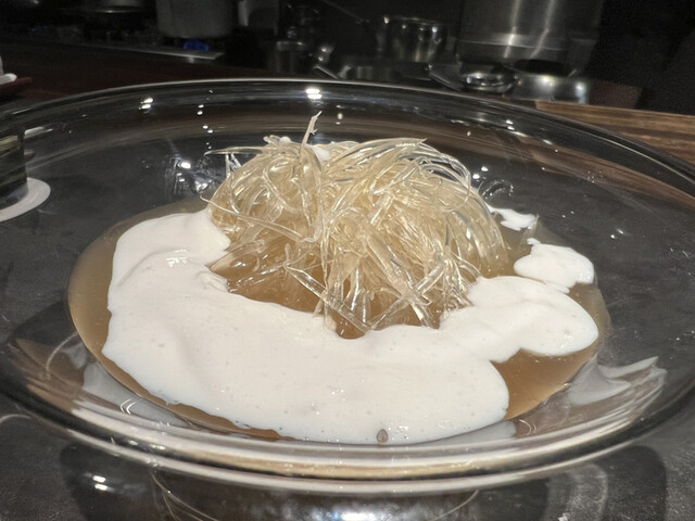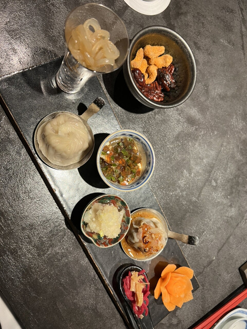 京都辺鄙な場所にある中華中華だが味付けが繊細であり塩辛くない素材も惜しみなくシェフの心配りも良い昔旅先で食べた焼豚と海老のすり身が美味しかったという話から、次の予約では自身で研究し作ってくれた