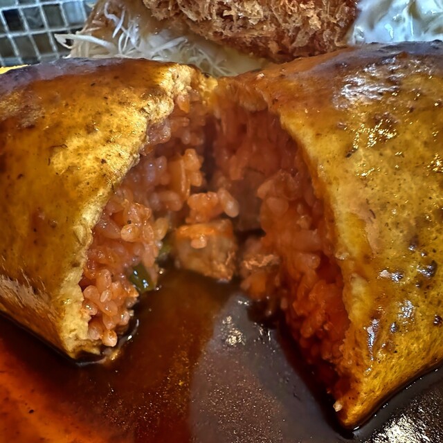 チキンライス(ケチャップ)とデミグラスソースが上手く共存してま