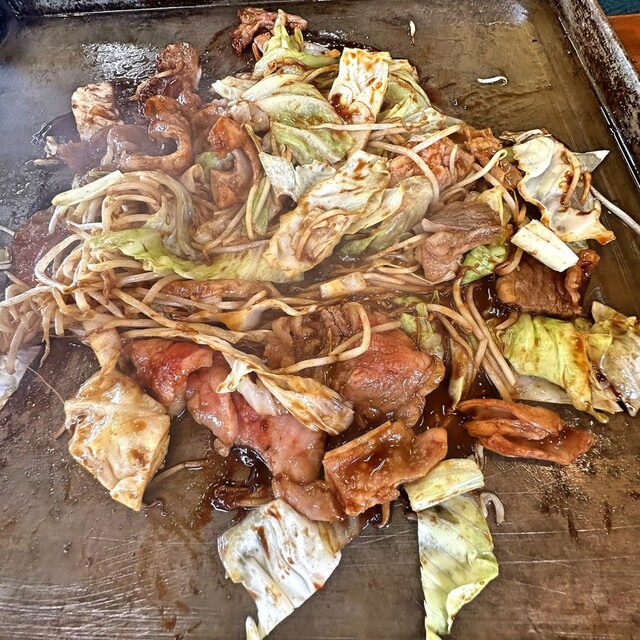 ♦︎亀山みそ焼きうどん(カルビ&ホルモン(豚):ライス(小)とん汁)