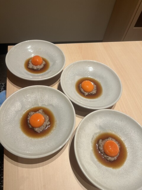 コースの最初は、和牛と本鮪のユッケドッグ!