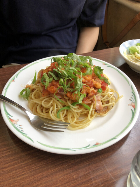 Bランチ 魚介のトマトソーススパゲッティ パスタ自体は塩?大葉たっぷり サッパリ美味しい