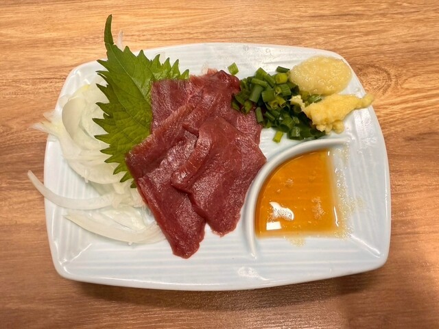 馬刺しはサラッと食べられるタイプで、柔らかさもありつつ噛むほど赤身の旨さを感じられる一皿。たっぷりのネギと合わせてさっぱりいただけました。海鮮もお肉もどちらも楽しめるのが、このお店の魅力だと思います。