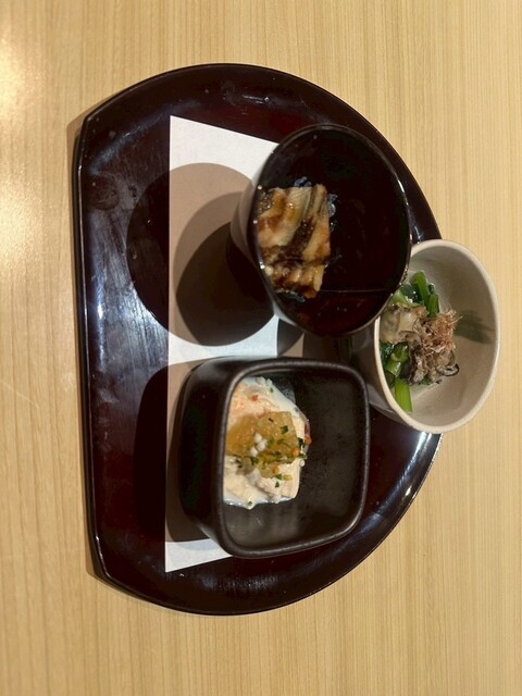 3種類の小鉢も、一つひとつが丁寧な作りで、量は控えめですが、味付けがやさしく、お酒とともに楽しめる料理でした。