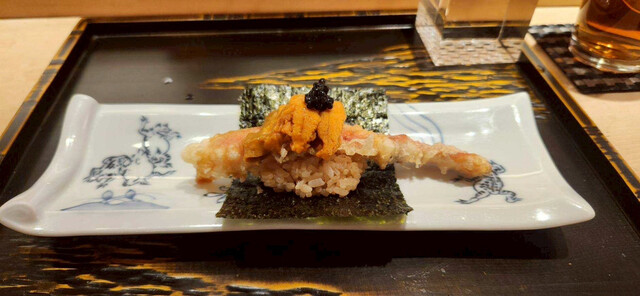 途中で出てきた雲丹はキャビアも乗っていて見た目も豪華!雲丹の濃厚さと海苔の香りそして蟹の旨みのバランスが絶妙でした!