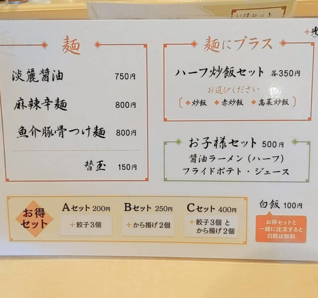 1番大好きな淡麗醤油ラーメン750円+白唐揚げ2個、ご飯300円を注文♪