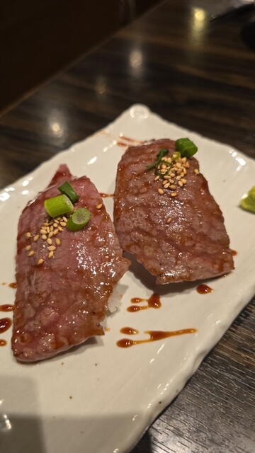 炙りユッケはとにかくとろける。卵黄を崩して絡めた瞬間の幸福感すごい。濃厚だけどくどくない。黒毛和牛のにぎりも脂の甘みがしっかりあって、口の中でスッと溶ける感じ。スタートからかなりレベル高い