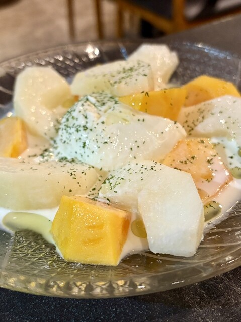 →この日は梨と柿。マスカルポーネを使用した自家製のソース。