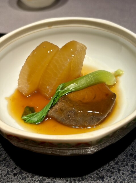 凌ぎは、鰤と大根の炊き合わせ。温かい器で提供され、心までほぐれる優しい味わい。