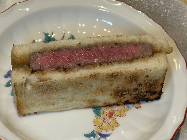 シャトーブリアンのステーキサンドは、まずはそのまま。