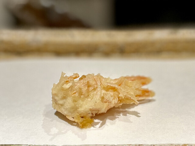 食べやすく身がカットされています。衣にも貝の旨味が溢れ磯海苔との相性も抜群。プリプリの蛤、最高です。