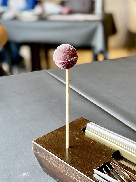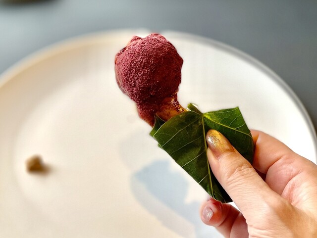 お口直しのキャンディー。フレッシュな山椒の実とホエイから作られたアイスキャンディーです。爽やかにリセット✨