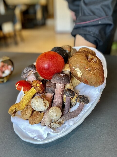 ヤマドリタケなど、シェフが採取した色とりどりのキノコたち♡