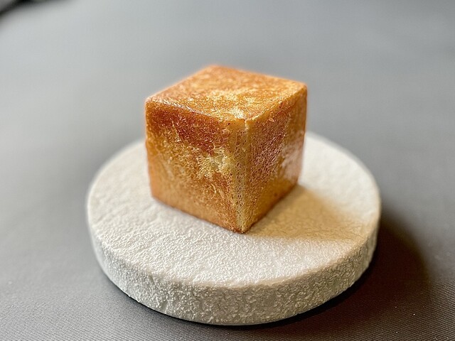 立方体 焼きたてサマートリュフ シェフ特製発酵バター。表面カリカリ、中はしっとり。トリュフとバターの香りがたまりません♡