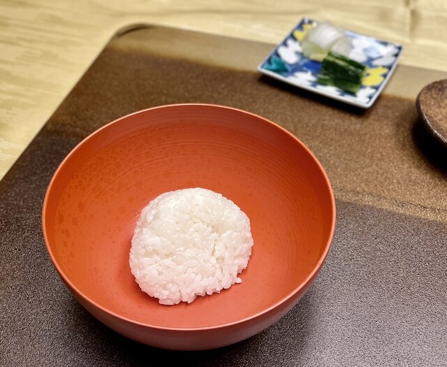 炊き立て新米の喜利飯、季節の香の物。
