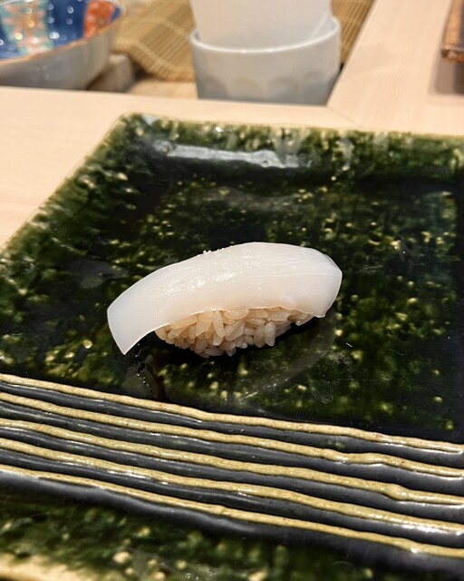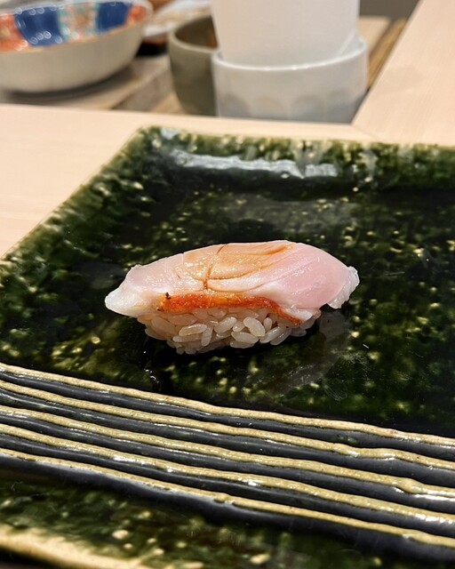 藁焼きしたメジマグロは口に入れた瞬間ふわっと藁焼きの香りがしてネタとご飯の間に入っている漬けの黄身と芽ネギがいいアクセントになってとにかく口福でした。