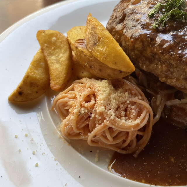 玉ねぎなどが合わさったデミグラスソースが、ハンバーグとバランスが取れていて主張されすぎない味付けがまた絶妙に導き出してくれます~♪