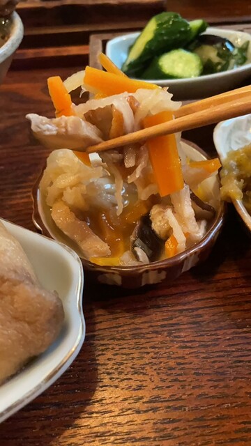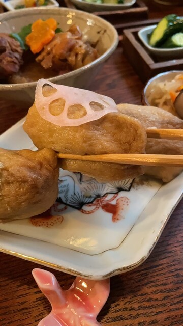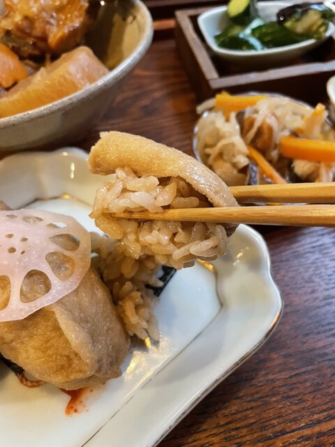 ほのかに香るほうじ茶が、お米一粒一粒に浸透。お口の中にほうじ茶の香りがふわっと広がります。柔らかさと程良い甘さの効いたお揚げさんがなんとも美味でした!中には、長芋も入っておりシャキシャキとした良いアクセントでした!
