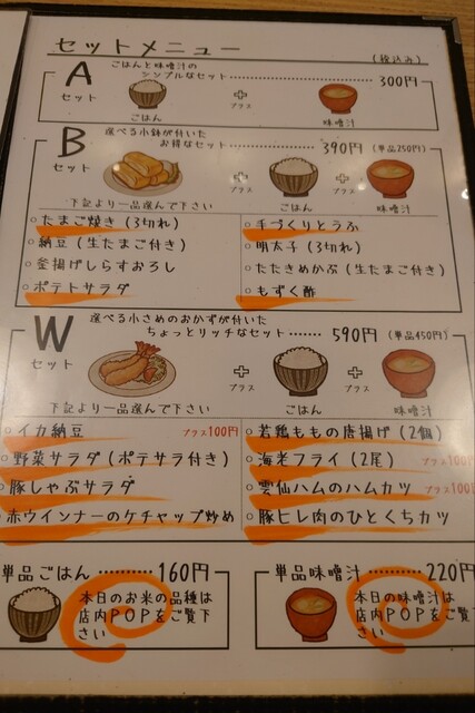 訪問当日は珍しく鯖の醤油煮が品切れのため、定番の醤油&味噌のセットが注文できず。