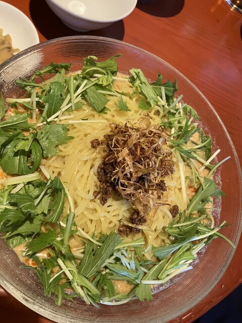 ランチして来ましたー❣️12時には行列相変わらずの人気店ですね。13時以降に入店したらふわふわの杏仁豆腐が付きますよ日替わり、酢豚、今だと冷やし担々麺がオススメで友達とシェアして美味しく頂きました。夜のお得コースもめちゃばり良かです!