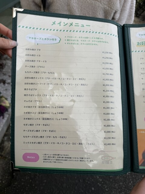 お好み焼きの牡蠣トッピングを2人でシェア。