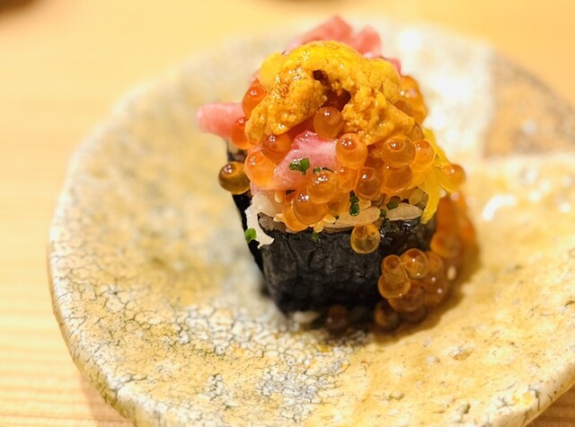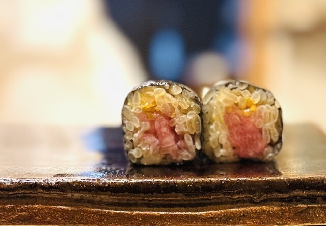 〆のらんまる巻きに辿りつけるように、シャリを少なくしてもらいながら、なんとからんまる巻きまでたどり着けました!