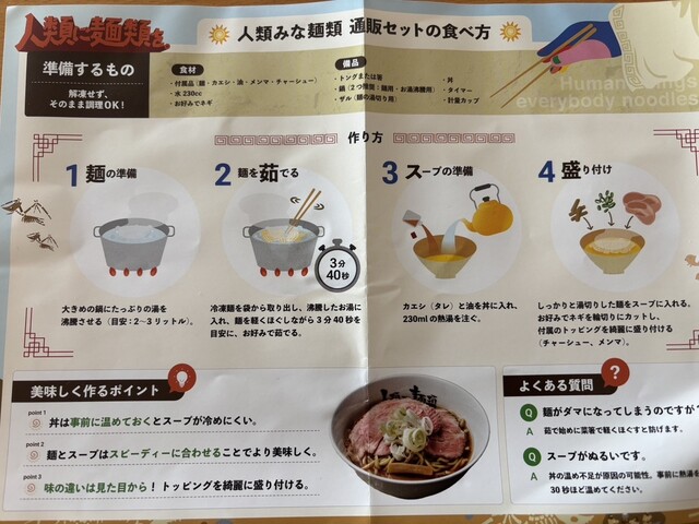 作り方の説明が微妙に言葉足らずで、冷凍されたレアチャーシューとメンマとスープはどう調理したら良いのか不明。