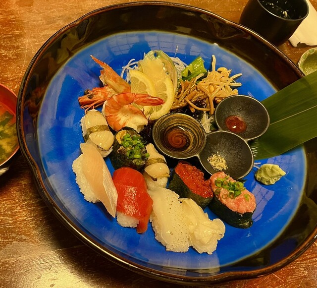 ボリューム満点のお寿司盛合せ&ワカメの入った おみおつけ。