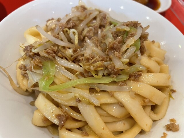 味噌だれ餃子と平打ち麺のジャジャ麺が抜群!