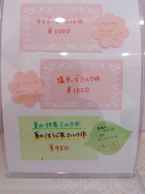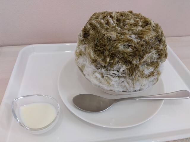 津市河芸町杜の街に出来たかき氷屋さん。団地の中にある、ピンクのコンテナがお店です。夏のほうじ茶ミルク氷、白あんクリームにしてみました。きれいなほうじ茶ミルク氷の中に白あんクリーム。そして小豆と杏がたっぷり入っています。とにかくミルク氷が美味しい。追加で練乳もかけられます。白あんクリームに入っている杏の甘酸っぱさが、いいアクセントになって最後まで飽きずに食べられます。税込1,200円は大満足。