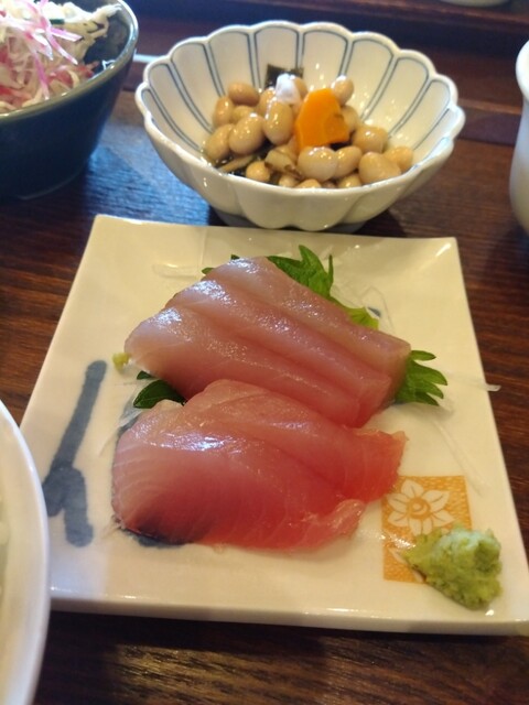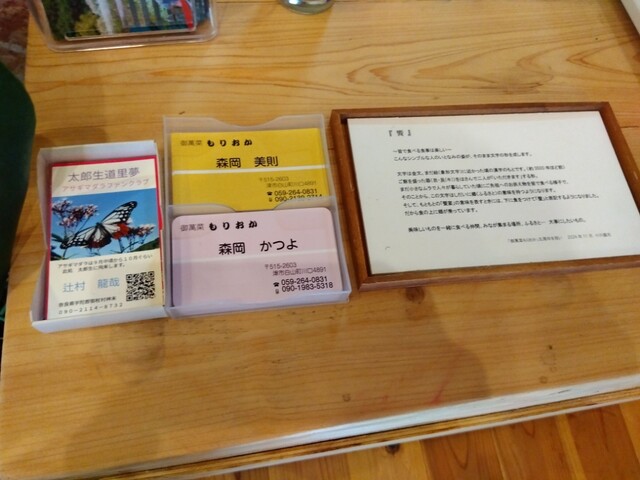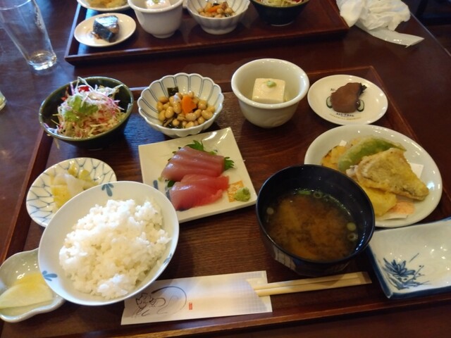 津市白山町川口にある和食のお店。古民家を改装したお店で、入店すると、手作りの人形や飾りなどの作品や、名松線等の地元の写真がいっぱいで、温かい雰囲気です。メニューは日替わり定食のみ。お刺身、天ぷら、焼き魚、煮物等々、優しい味付けのおかずが沢山。お味噌汁と漬物もついて、ご飯はおかわりOK。ドリンクとお菓子も付いて税込1,500円は大満足。休日に行ったら「本日は予約のみ」だったので、予約をおすすめします。