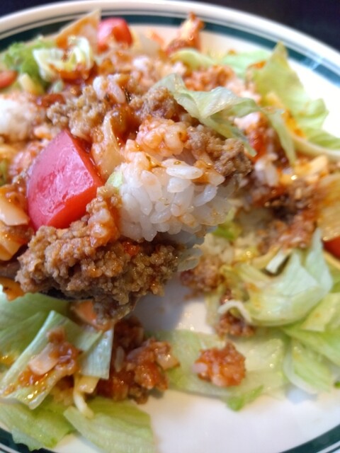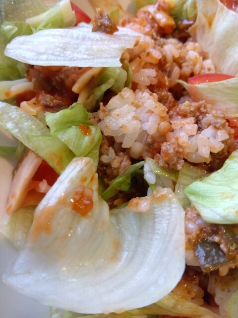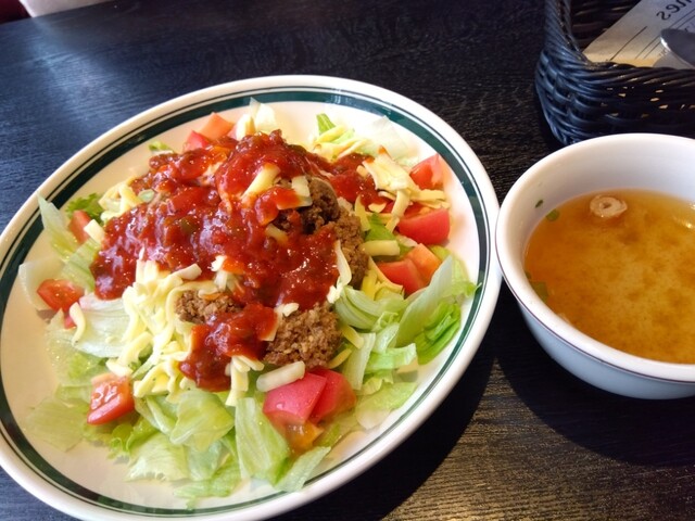 津市久居野村町、R165沿い久居総合体育館に向かう分かれ道の所にあります。とってもおしゃれなバーで、矢沢永吉のPVが流れていました。日替わり含めて、ランチは色々選べて900円。+300円でドリンクが付きます。タコライスが美味しいと聞いていたので、タコライスのランチにしました。レタスとチーズがたっぷりのタコライスは、本格的な味でとても美味しい。しかもボリュームも十分でした。今回は普通のタコライスにしましたが、辛めのタコライスも美味しそうだったので、次回はチャレンジしてみようと思います。大満足。