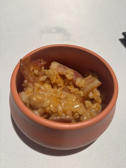 お店から幸せのおすそ分けとパエリアが来たのも感動!味は水分多めの炊き込みご飯とリゾットの間な感じでした。