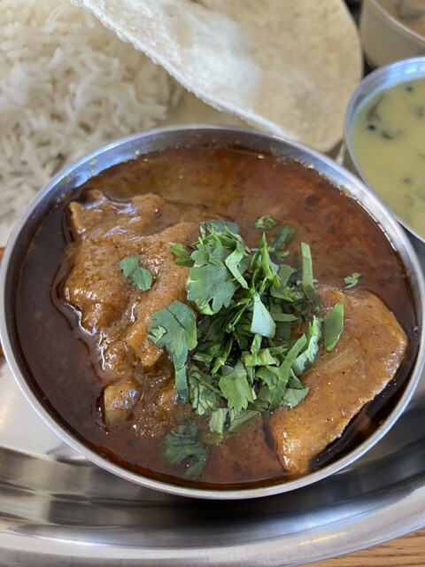 ノンベジのミーンコンラブーもとても美味しかったです。マグロのカレーでスパイスと酸味のバランスが絶妙でパスマティライスとの相性抜群でした。