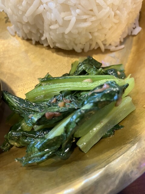 副菜はほうれん草炒めとトマトアチャールとシンプルですがこれで十分。