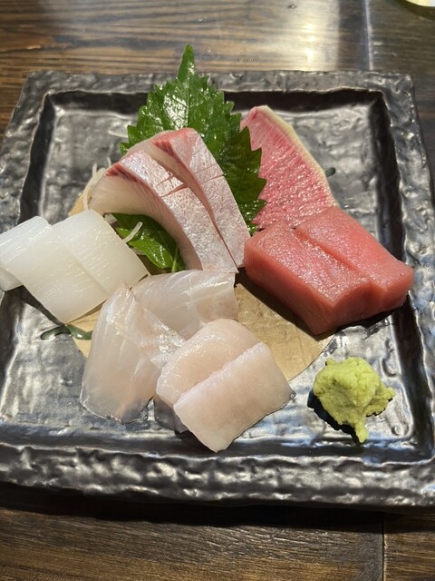 刺身盛り合わせはお得感あります。どれも新鮮で、もちもち甘みが強く弾力がありこれまた美味しい。