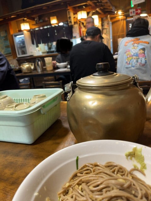 おー甘めのツユが蕎麦と相まって美味しい。今11月やけど、やっぱり冷やしにして良かった!でも前に座ってる人のあったかい蕎麦もうまそうやなぁ。